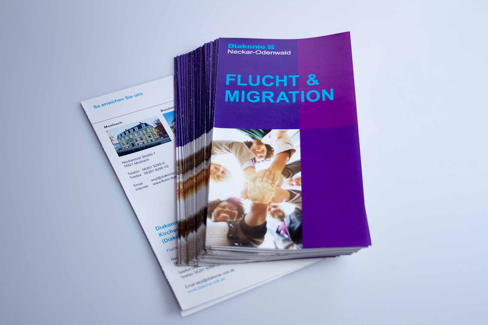 Ein weiterer Flyer der Abteilung Flucht & Migration im Diakonischen Werk des Neckar-Odenwald-Kreises wurde von der Mosbacher Werbeagentur markus slaby media überarbeitet.