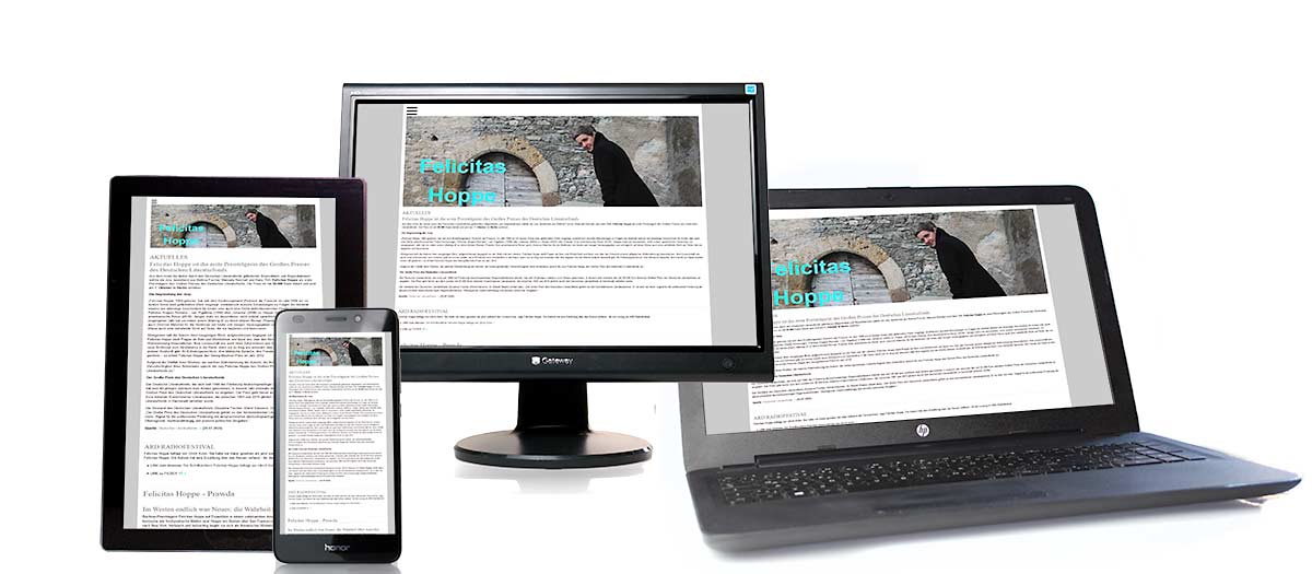 TYPO3 Webseite felicitas-hoppe.de im Smartphone, Tablet, Laptop und auf dem Monitor