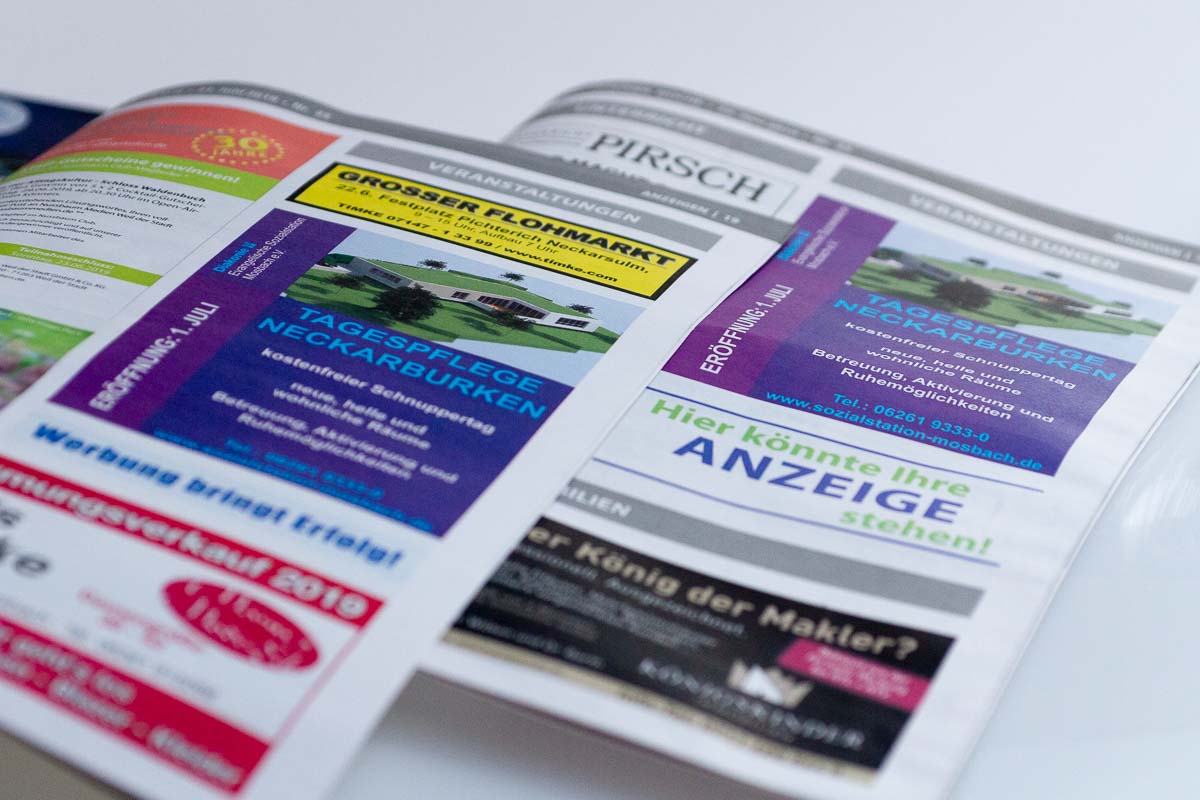 Auffällige und Attraktive Anzeigenwerbung für neues Betreuungsangebot - Mosbacher Werbeagentur markus slaby media unterstütz Sozialstation